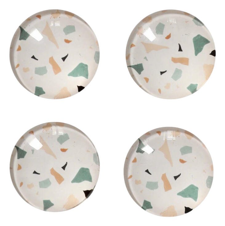 Gefertigt aus robustem Kunststoff, bieten diese Magnete eine zuverlässige Haftkraft auf vielfältigen Oberflächen wie Magnettafeln, Metall- und Stahloberflächen sowie Whiteboards. So lassen sich Notizen, Fotos oder wichtige Dokumente sicher und übersichtlich anbringen. Die Kombination aus Funktionalität und ansprechendem Terrazzo-Design macht diese Magnete zu einem attraktiven Accessoire für jeden Arbeitsplatz.