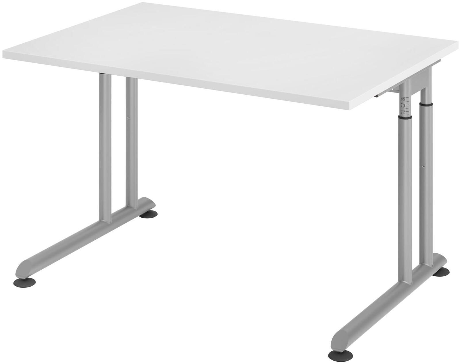 Der HAMMERBACHER höhenverstellbare Schreibtisch VZS12/W/S in elegantem Weiß vereint Funktionalität und modernes Design. Die Tischplatte besteht aus robuster Spanplatte, die nicht nur eine ansprechende Optik bietet, sondern auch für ihre Langlebigkeit bekannt ist. Das stabile Gestell aus hochwertigem Stahl sorgt für eine sichere und zuverlässige Nutzung, während die silberne Farbgebung des Gestells einen stilvollen Kontrast zur weißen Tischplatte bildet. Mit den kompakten Maßen von 120 cm in der Breite, 80 cm in der Tiefe und einer Höhe von 68 cm passt dieser Schreibtisch perfekt in verschiedene Arbeitsumgebungen, sei es im Homeoffice, im Büro oder in einem kreativen Arbeitsraum. Die Möglichkeit, die Höhe des Schreibtisches anzupassen, fördert eine ergonomische Haltung und unterstützt Sie dabei, auch während längerer Arbeitszeiten bequem zu sitzen oder zu stehen. Dies kann maßgeblich zur Verbesserung Ihrer Produktivität und Ihres Wohlbefindens beitragen. Das C-Fuß-Gestell bietet nicht nur Stabilität, sondern auch ausreichend Beinfreiheit, sodass Sie sich während der Arbeit frei bewegen können. Der Schreibtisch kommt ohne zusätzliche Fächer oder Schübe, was Ihnen die Flexibilität gibt, Ihre Arbeitsfläche nach Ihren persönlichen Bedürfnissen zu gestalten. Die klare Linienführung und die schlichte Eleganz des HAMMERBACHER VZS12/W/S machen ihn zu einem zeitlosen Möbelstück, das sich nahtlos in jede Einrichtung einfügt. Er ist die ideale Wahl für alle, die Wert auf Funktionalität und Stil legen.Technische Daten