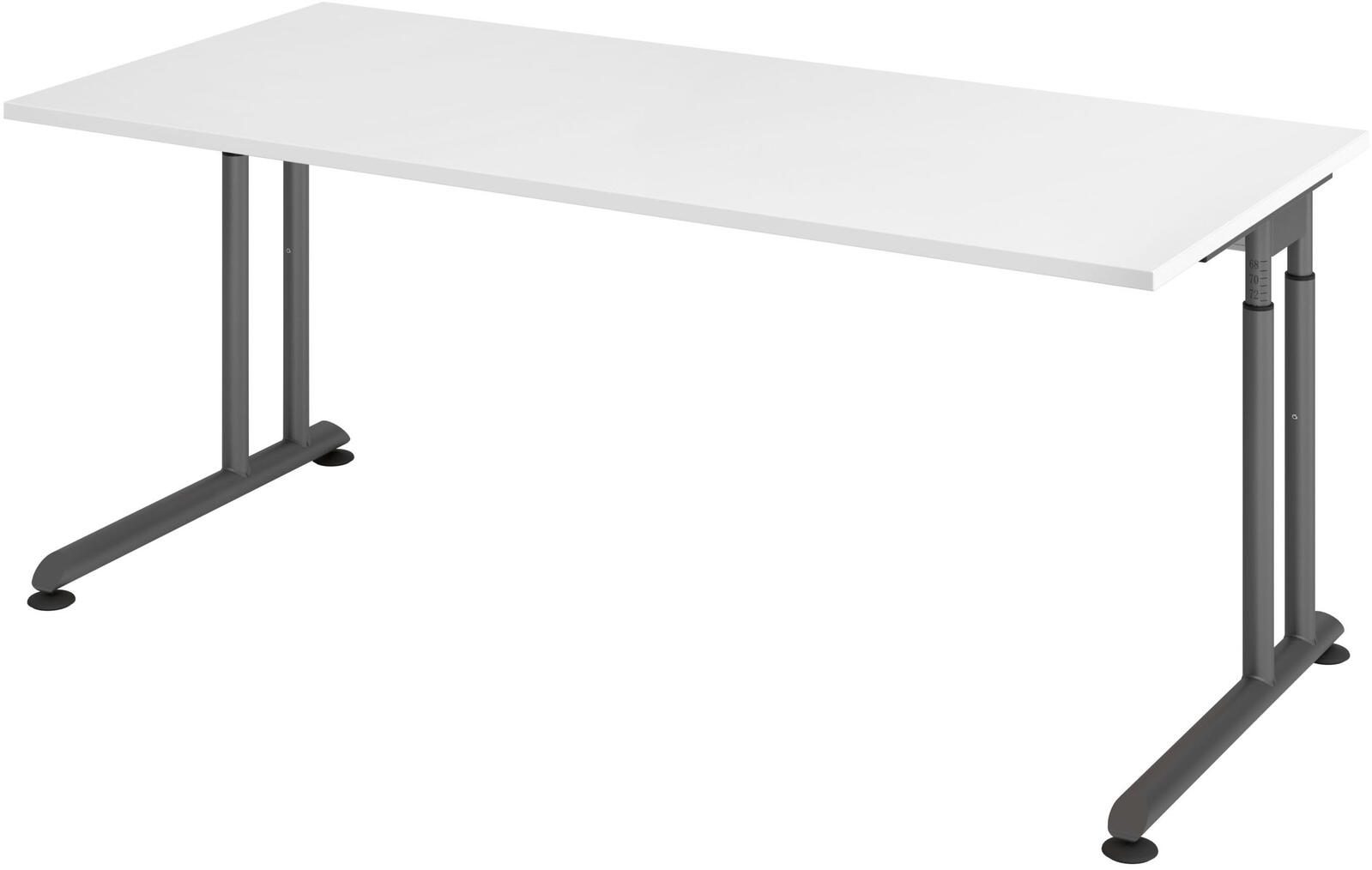 Der HAMMERBACHER höhenverstellbare Schreibtisch VZS19/W/G in elegantem Weiß vereint Funktionalität und modernes Design. Mit einer großzügigen Tischplatte aus robuster Spanplatte, die eine Fläche von 180 cm x 80 cm bietet, ist dieser Schreibtisch ideal für Ihr Home Office oder den Arbeitsplatz. Die Kombination aus einem stabilen Stahlgestell in stilvollem Grafit und der weißen Tischplatte sorgt für eine harmonische Optik, die in jedes Raumkonzept passt. Die innovative C-Fuß-Gestell-Ausführung ermöglicht es Ihnen, die Höhe des Schreibtisches individuell anzupassen und somit eine ergonomische Arbeitsposition zu finden. Dies fördert nicht nur Ihr Wohlbefinden, sondern kann auch Ihre Produktivität steigern. Ein höhenverstellbarer Schreibtisch ist besonders vorteilhaft, um zwischen Sitzen und Stehen zu wechseln, was langfristig Rückenbeschwerden vorbeugen kann. Mit einem Gewicht von nur wenigen Kilogramm ist der Schreibtisch leicht zu transportieren und flexibel einsetzbar. Das klare, zeitlose Design und die hochwertigen Materialien machen den HAMMERBACHER Schreibtisch zu einem langlebigen Möbelstück, das sowohl in modernen als auch in klassischen Büros hervorragend zur Geltung kommt. Die einfache Montage und die Pflegeleichtigkeit der Materialien tragen zusätzlich zur Attraktivität dieses Produkts bei. Genießen Sie die Vorteile eines höhenverstellbaren Schreibtisches und schaffen Sie sich einen Arbeitsplatz, der optimal auf Ihre Bedürfnisse abgestimmt ist. Der HAMMERBACHER höhenverstellbare Schreibtisch VZS19/W/G ist die ideale Wahl für alle, die Wert auf Ergonomie und Stil legen.Technische Daten