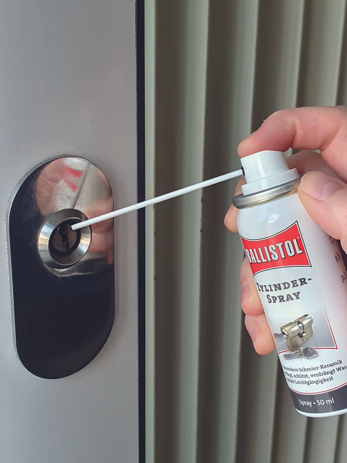 Dank seiner handlichen Verpackung in Form einer praktischen Sprühdose ist das Zylinderspray einfach anzuwenden. Mit einem Inhalt von 50,0 ml hast du ausreichend Produkt zur Verfügung, um deine Schließzylinder regelmäßig zu warten und in bestem Zustand zu halten.